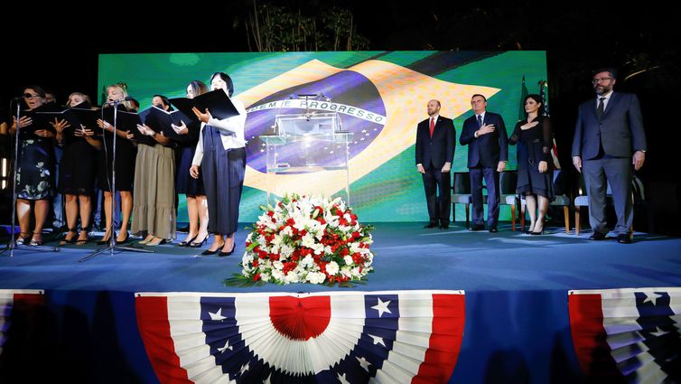 O presidente Jair Bolsonaro participou, na noite desta quarta-feira (3), de uma celebração pelo aniversário de 243 anos da independência dos Estados Unidos, comemorada no dia 4 de julho. O evento ocorreu na embaixada do país, em Brasília, e contou com a presença da primeira-dama, Michelle Bolsonaro, de ministros, parlamentares e diplomatas. Em um breve discurso no final do evento, o presidente citou a longa parceria entre as duas nações na luta por liberdade.
