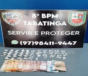 No município de Tabatinga (a 1.108 quilômetros de Manaus), policiais militares prenderam um homem de 25 anos. Com ele, a guarnição da PM encontrou 55 porções de entorpecentes dos tipos cocaína e maconha, além de R$ 160 em espécie, oriundos do crime. O homem foi conduzido até a 4ª Delegacia Regional de Polícia Civil (DRPC), onde foi autuado em flagrante por tráfico de drogas.
